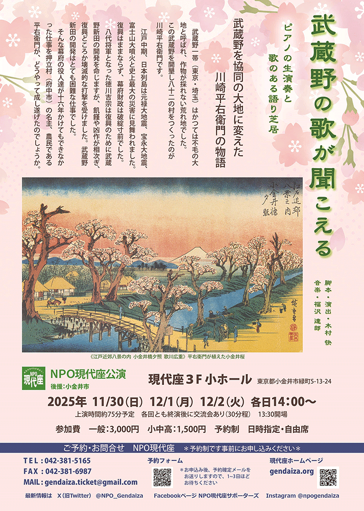 | NPO現代座 | 〒184-0003 東京都小金井市緑町5-13-24現代座会館 TEL:042-381-5165 FAX:042-381-6987 Mail:info@gendaiza.org Copyright2025, NPO Gendaiza.All Rights Reserved. |
